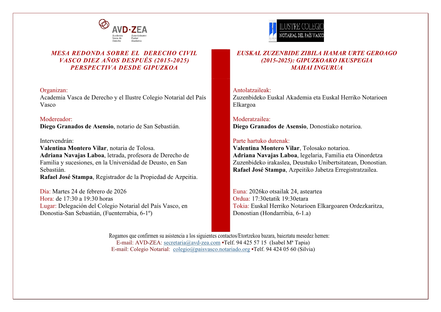 MESA REDONDA SOBRE EL DERECHO CIVIL VASCO DIEZ AÑOS DESPUÉS (2015-2025) PERSPECTIVA DESDE GIPUZKOA