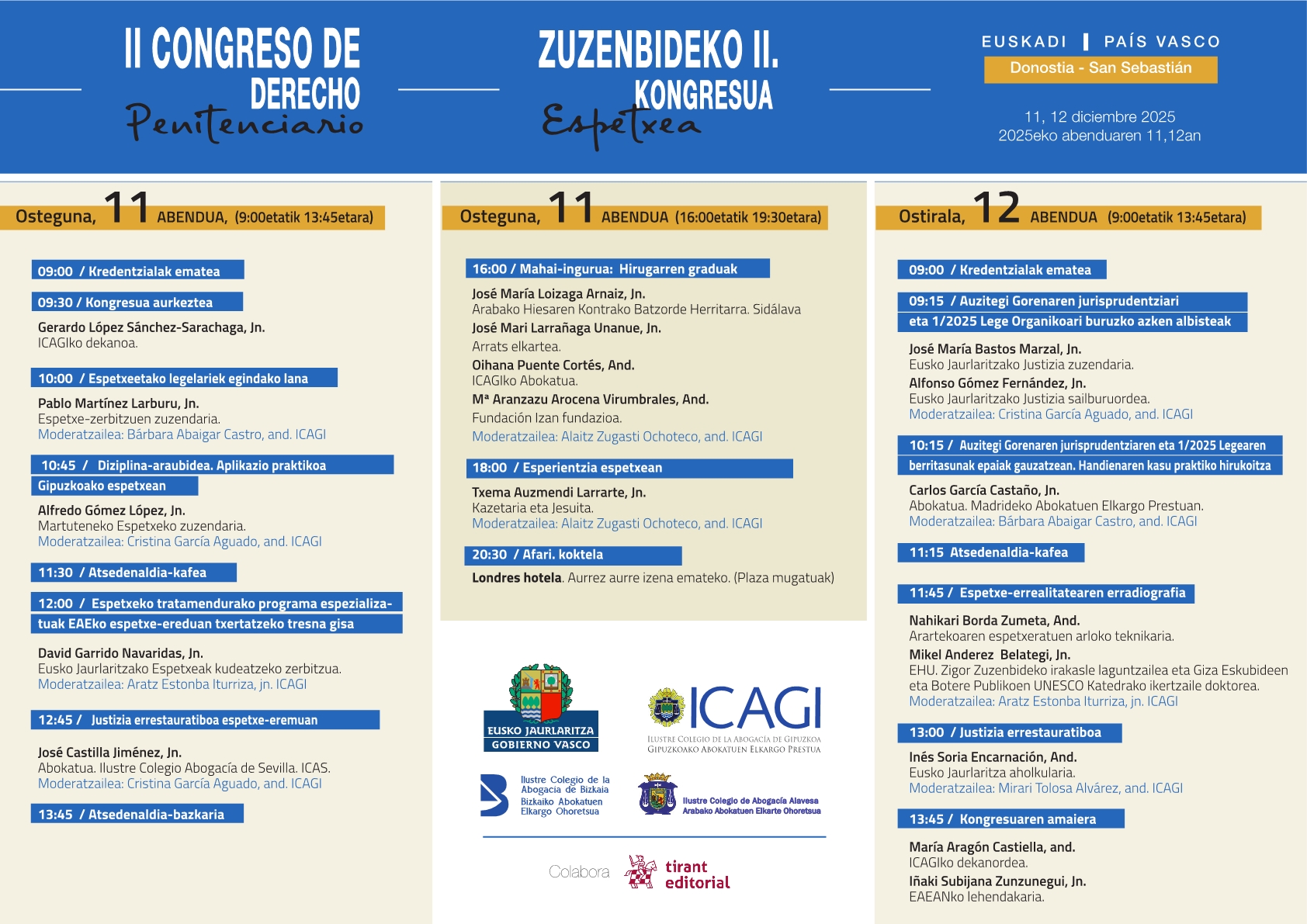 ESPETXE ZUZENBIDEARI BURUZKO II. KONGRESUA DELA ETA EOAJTn ALTA ESKATU EDO JADA BERTAN ALTA EMANDA DAUDEN KIDEENTZAT Espetxe Zuzenbideko Batzordean hartutako erabakia medio, Kongresuan izen ematea eta parte-hartzea ezinbestekoa da EOAJTn alta ematea eskatu edo jada altan emanda dauden kideentzat, txandan jarraitu edo bertan sartzeko.